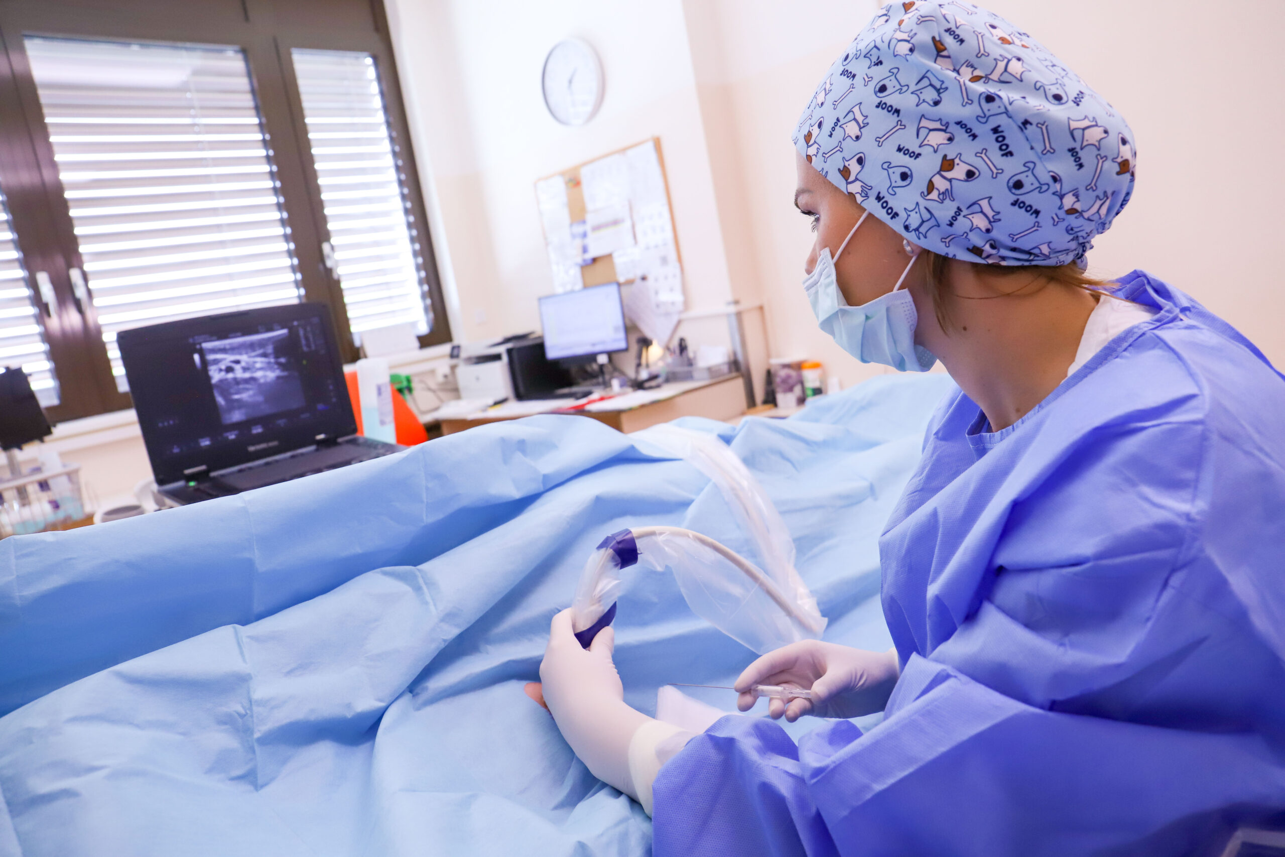 Další možností je, že po individuálním zhodnocení jednotlivých pacientů (žilního systému, léčby a dalších náležitostí) zavádím vstupy (PICC katétr, midline, dlouhý periferní katétr, ale i krátké periferní kanyly), s využitím sonografické kontroly. Také zde zavádíme jehly do PORTů. Práce neprobíhá jen na našem oddělení, ale v případě potřeby docházíme i k lůžku pacienta.