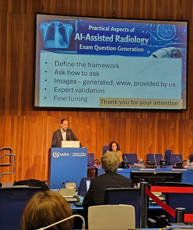 Prof. Lambert přednesl vyzvané sdělení s názvem Practical Aspects of AI-Assisted Radiology Exam Question Generation. Přednáška se zaměřila na praktické využití umělé inteligence při tvorbě testových otázek v radiologii, jejich validaci, vyvážení obtížnosti a kontrolu kvality. Byla součástí odborného bloku AI-driven exam question generation for radiology a souvisela s přípravou otázek pro zkoušky European Diploma in Radiology (EDiR).