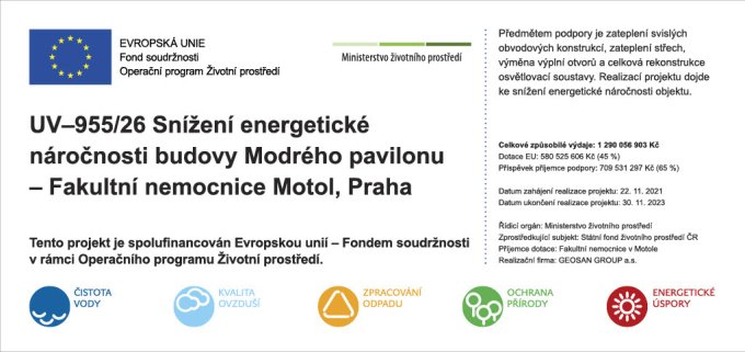 UV-955/26 Snížení energetické náročnosti budovy Modrého pavilonu – Fakultní nemocnice Motol, Praha