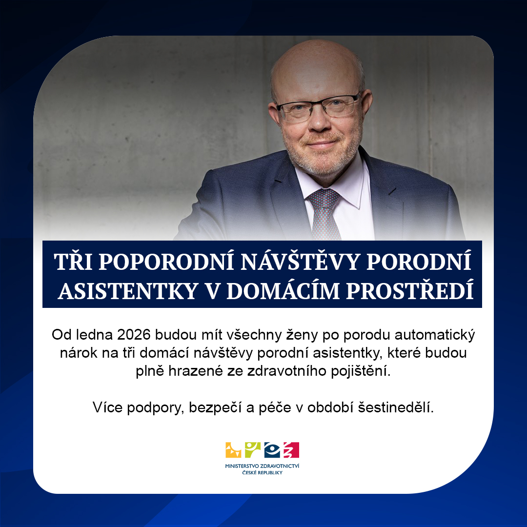 Od ledna 2026 budou mít ženy po porodu nárok na tři návštěvy porodní asistentky v domácnosti hrazené ze zdravotního pojištění