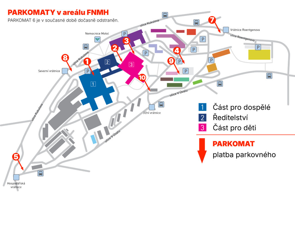 Vážení pacienti a návštěvníci Fakultní nemocnice Motol a Homolka, úhradu za parkování vozidel v areálu Motol, lze provést v platebních automatech – parkomatech rozmístěných po celém areálu.